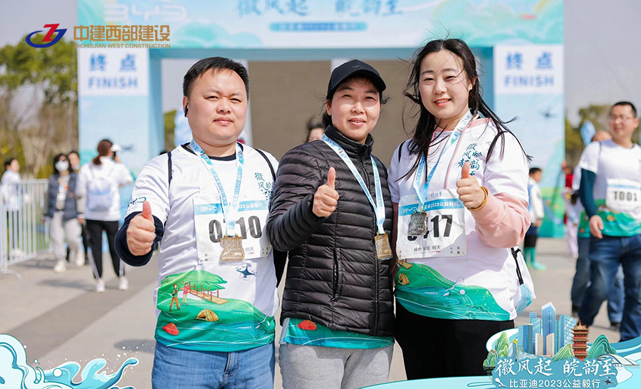 到達終點后,員工們獲得了主辦方頒發的紀念牌。那胸前的紀念牌就是對中建西部建設集團員工們毅力的最好的證明與獎勵。